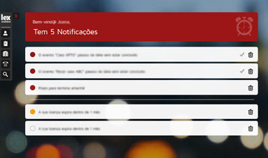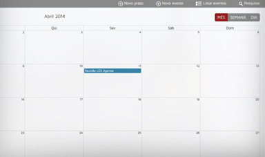 Agenda com gestão de eventos e contagem, progressiva e regressiva, dos diferentes tipos de prazos.